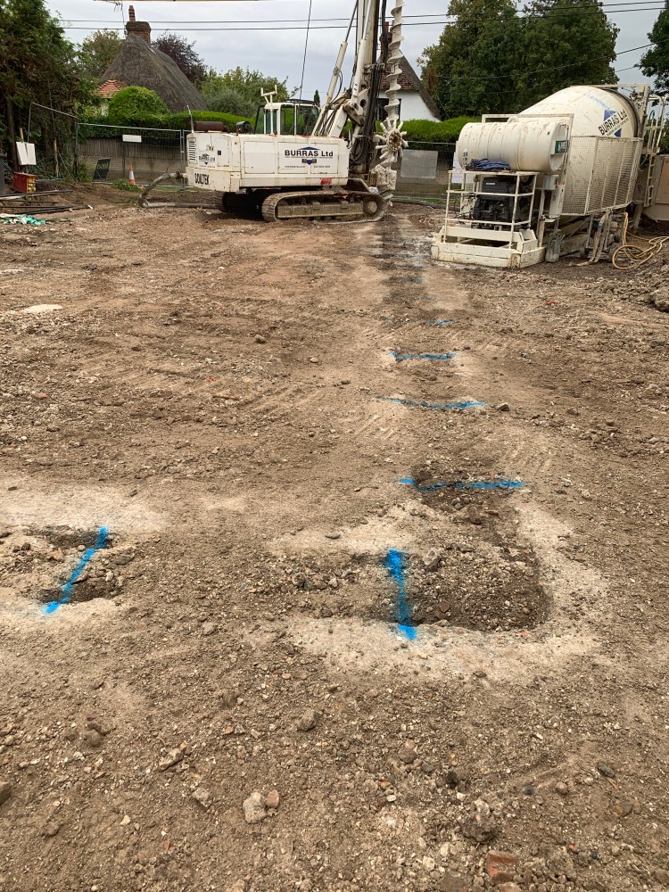 A piled wall has no effect on the neighbour’s property as the piles are formed in discrete holes cored into the chalk compared to a battered back excavation.