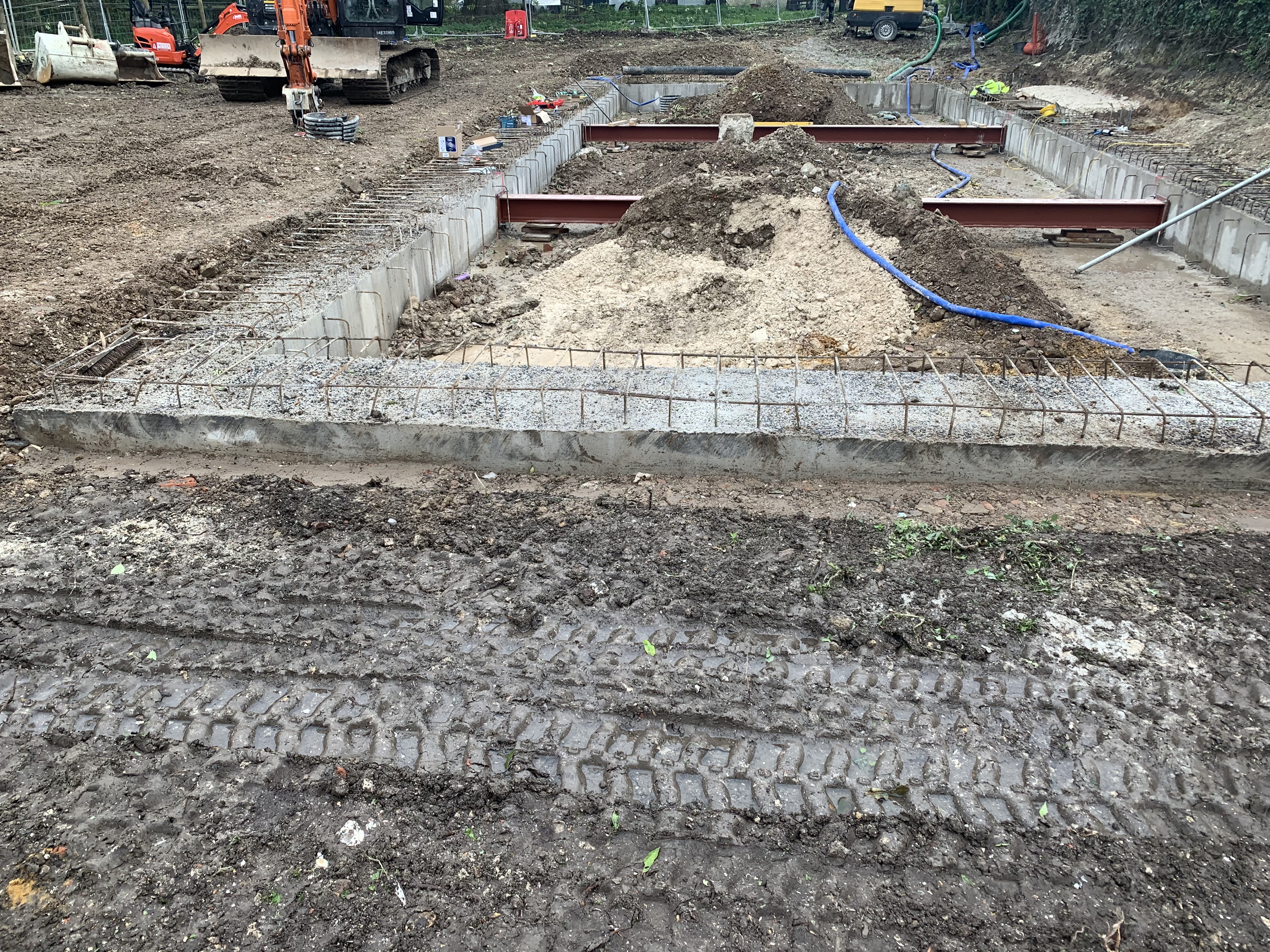 As mentioned in the week 15 post, the beams were capped last week. The encasements came off last Friday 25th of October. In the meantime, the groundwork team from Spaw have been busy getting the grounds to a state where it is level so they can start the excavation of the spoil from within the piled retaining wall with their digger.