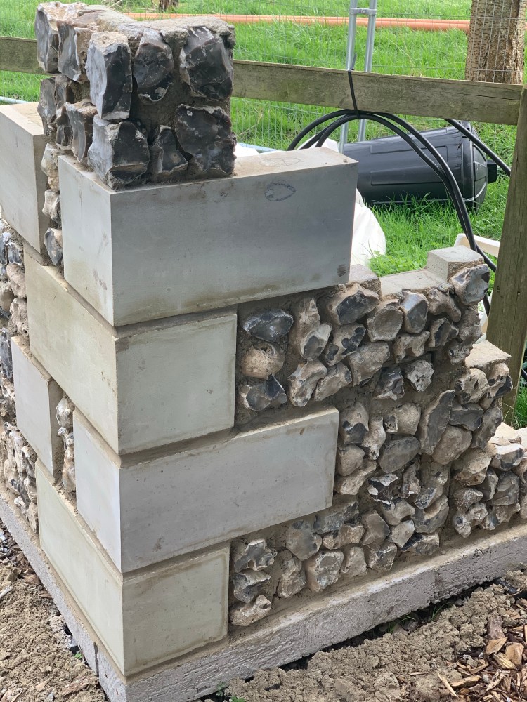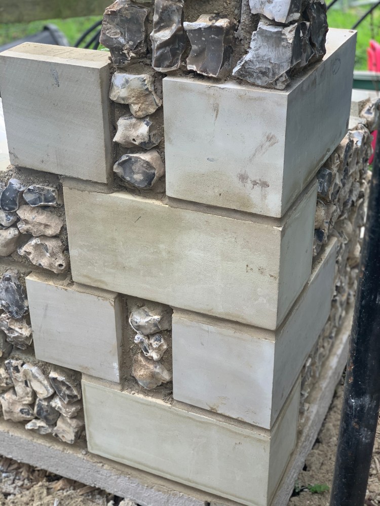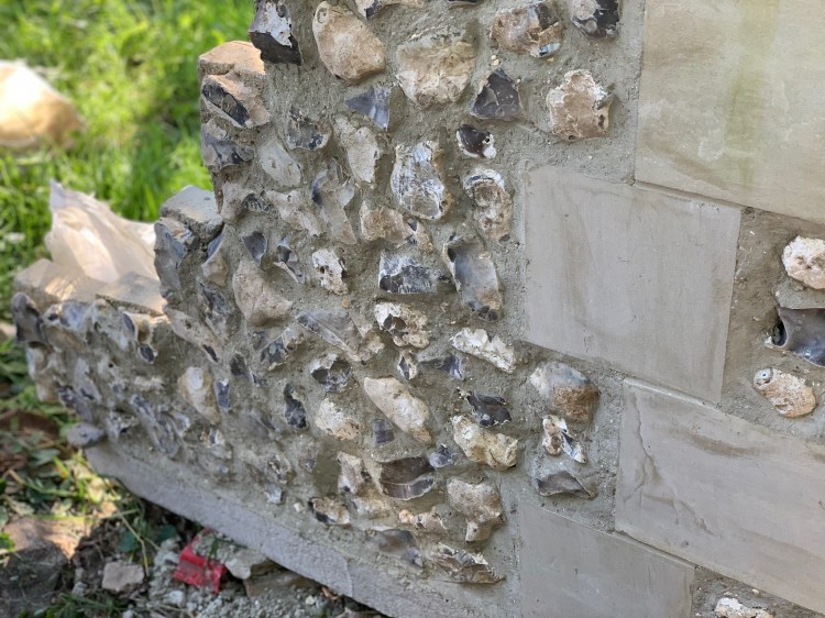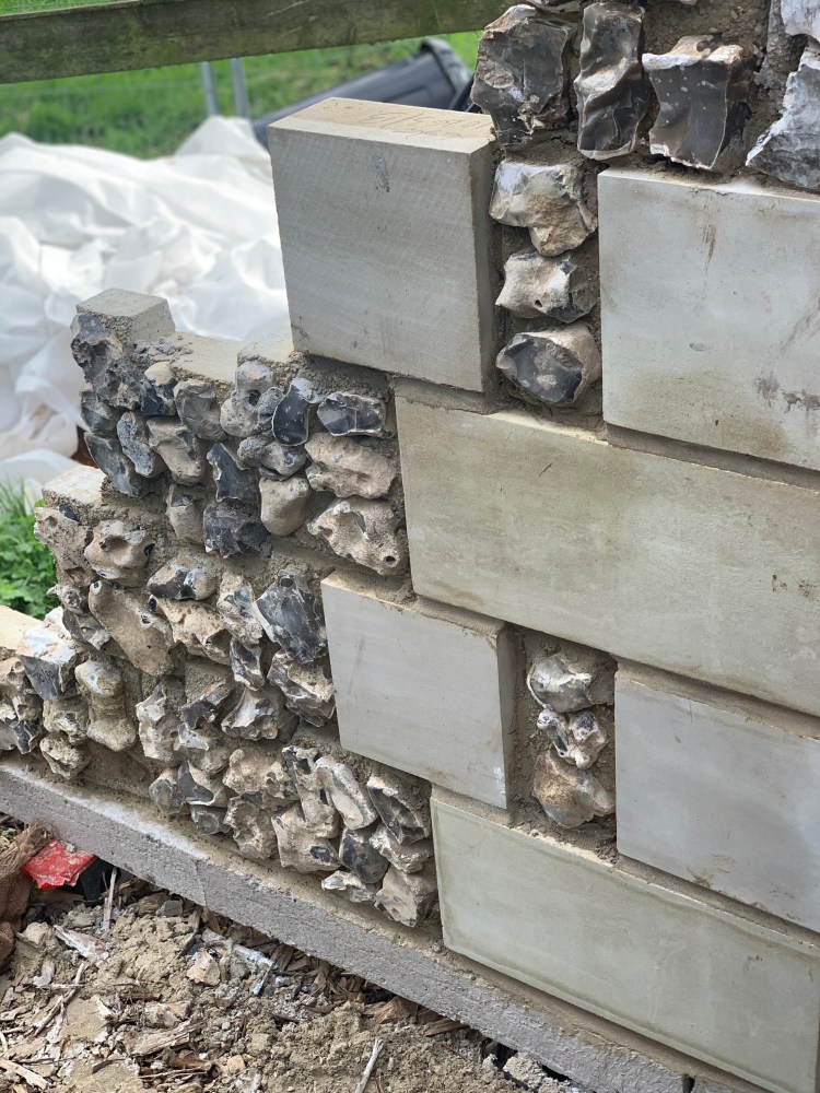 We found a company locally that does a fantastic job with cladding locally sourced flint. They’re called Pocket Block Based in Weyhill Hampshire.