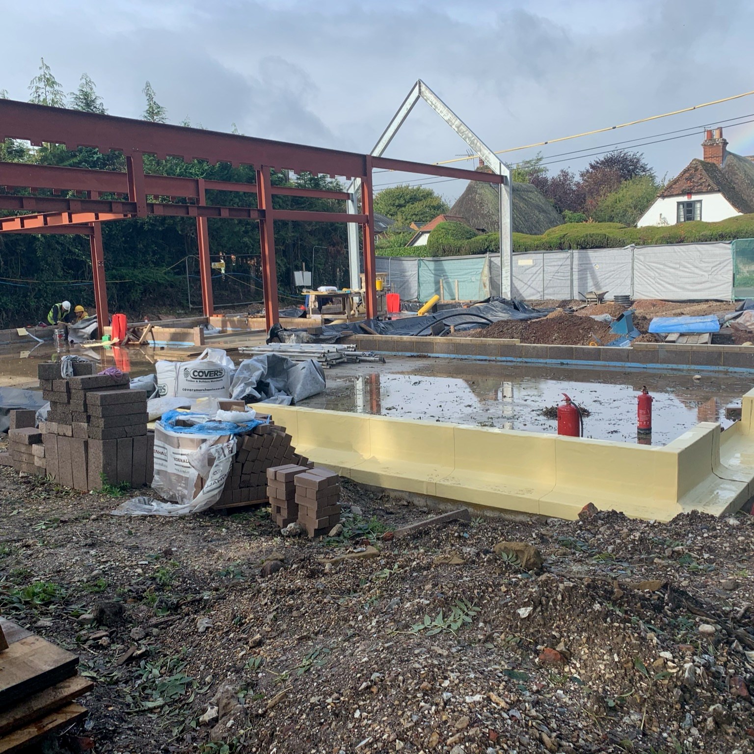 Following the completion of the tanking work, The installation of the SIP started last week. The rain has started so we’ve lost a few days to rain. In parallel, the ground workers completed installation of the drainage, installation of the sewage treatment plant and the storm water drainage etc. I will cover this in the next post including the burial of the HV cables.